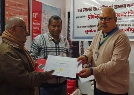 गाजीपुर। बुधवार को 21वीं वर्षगांठ और सम्मान समारोह का सिंचाई बाग स्थित चौराहे पर सेराजेम सेंटर पर आयोजन किया क्या जिसमें कार्यक्रम के मुख्य अतिथि गाजीपुर मेडिकल कॉलेज के वाइस प्रिंसिपल (उप प्रधानाचार्य) प्रोफेसर डॉक्टर नीरज पांडे विशिष्ट अतिथि डॉक्टर राजकुमार आर चौबे (दंत चिकित्सक) &प्रेस क्लब के अध्यक्ष शिवकुमार सिंह और संजय सिंह राम सिंह इंद्रजीत सिंह जी उपस्थित रहे जिनका सेंटर इंचार्ज रंजीत ने सभी मेहमानों का बुके और अंग वस्त्र देकर सम्मानित की कार्यक्रम में आए हुए सभी आगंतुओं को प्रिंसिपल साहब के द्वारा द्वारा सर्टिफिकेट , और बेल्ट,आई कवर दिया गया। साथ ही साथ कार्यक्रम का संचालन करते हुए रंजीत जी ने कहा कि सेरेजम पिछले 11 सालों से निशुल्क थर्मल मसाज थेरेपी देकर रीड की हड्डी के जरिए लोगों के नर्वस सिस्टम को फिट रखने का काम कर रहा है। साथ ही साथ कार्यक्रम मैं डॉ राजकुमार चौबे जी ने लोगों को मुख के प्रति होने वाले असाध्य रोगों को प्रिकॉशन रखने की भी बात की जैसे कि कैंसर जैसी बीमारी आए हुए सभी आगंतुओं को ढेर सारा जानकारियां भी दी और उन्होंने बताया की सेरेजम रीड की हड्डी के ऊपर थेरपी देकर के हमारे स्ट्रक्चर को सही रख रहा है पिछले 11 साल से मैं इस सेंटर से जुड़ा हुआ हूं और अंत मे सराहना भी किया की जो की पिछले 11 सालों से जनपद में फ्री थेरेपी देकर के लोगों को जीवन लाभ पहुंचा रहा है और अंत में सफलतापूर्वक कार्यक्रम को समाप्त किया गया कार्यक्रम में उपस्थित सुनील यादव पदमा कुशवाहा राम दरस इंदिरा सीमा सिंह विक्रम यादव सुमित्रा, आदि स्टाफ उपस्थित रहे और इसे सफलतापूर्वक सम्मान समारोह और 15वीं वर्षगांठ संपन्न हुआ।