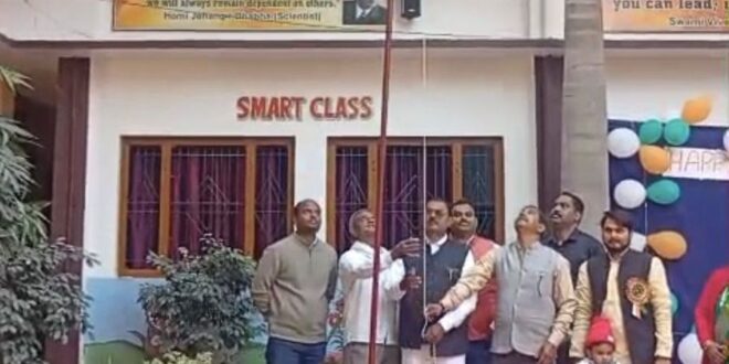गाज़ीपुर। प्रभात नगर कॉलोनी, तुलसी सागर, गाज़ीपुर स्थित स्वामी विवेकानंद स्कूल में 26 जनवरी को 77वाँ गणतंत्र दिवस हर्षोल्लास एवं देशभक्ति के वातावरण में मनाया गया। कार्यक्रम की शुरुआत ध्वजारोहण से हुई, इसके पश्चात राष्ट्रगान गाया गया। विद्यालय परिसर को तिरंगे रंगों की सजावट एवं गुब्बारों से भव्य रूप से सजाया गया। विद्यार्थियों द्वारा देशभक्ति गीत, समूह नृत्य तथा सांस्कृतिक कार्यक्रम प्रस्तुत किए गए, जिन्हें उपस्थित जनसमूह ने सराहा। नन्हे विद्यार्थियों की प्रस्तुति विशेष आकर्षण का केंद्र रही। इस अवसर पर महापुरुषों एवं राष्ट्रनायकों के चित्रों पर पुष्पांजलि अर्पित की गई। विद्यालय प्रबंधन द्वारा विद्यार्थियों को संविधान के मूल्यों, अनुशासन एवं राष्ट्रसेवा के प्रति प्रेरित किया गया। कार्यक्रम का समापन राष्ट्र निर्माण में योगदान देने के संकल्प के साथ हुआ। विद्यालय परिवार ने सभी शिक्षकों, विद्यार्थियों एवं अभिभावकों के सहयोग के लिए आभार व्यक्त किया।