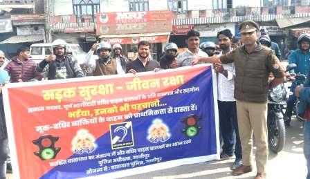 गाजीपुर। रौजा तिराहे पर पुलिस अधीक्षक डॉ ईरज राजा के आदेश के क्रम में यातायात प्रभारी मनीष कुमार त्रिपाठी के नेतृत्व में मूक बधिर वाहन चालकों के लिए एक कार्यक्रम का आयोजन किया गया कार्यक्रम का मुख्य उद्देश्य Deaf logo को पहचानो व मूक बधिर चालकों के प्रति सम्मान एवं आम जनमानस को जागरूक करना था इस कार्यक्रम के अंतर्गत मूक बधिर वाहन चालको के वाहन के आगे व हेलमेट के पीछे Deaf logo का स्टिकर लगाकर एक बाइक रैली हेतु रवाना भी किया गया इस कार्यक्रम का मुख्य उद्देश्य आम जनमानस को Deaf logo के बारे में जागरूक करना था। इस कार्यक्रम में मुख्य रूप से शामिल हुए सहजानंद – प्रधान मंडल कोषाध्यक्ष वाराणसी,मनीष सिंह -एक्स मेंबर,आशुतोष सिंह एक्स मेंबर,अनुज एक्स मेंबर ,मुरारी,मनीष टोटल 25 मूक-बधिर लोग शामिल हुए।