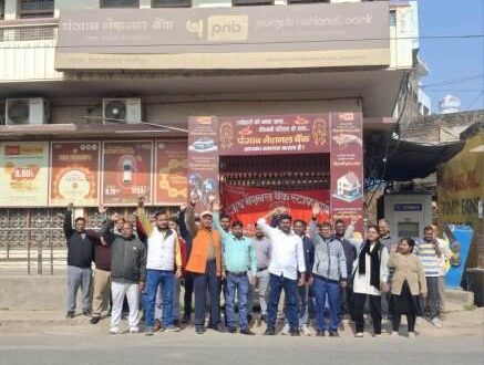 प्रदर्शन के दौरान बैंककर्मियों की आवाज पूरे शहर में गूंज उठी —