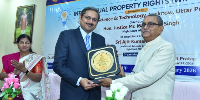 गाजीपुर। तकनीकी शिक्षा एवं शोध संस्थान, पी०जी० कालेज, ग़ाज़ीपुर के सभागार में दिनांक 21 फरवरी 2026 को “बौद्धिक संपदा संरक्षण” विषय पर एक दिवसीय कार्यशाला का आयोजन किया गया | कार्यक्रम की शुरुआत मुख्य अतिथि माननीय न्यायमूर्ति कुणाल रवि सिंह, उच्च न्यायालय इलाहबाद, विशिष्ठ अतिथि डा० जे० पीo सिंह, प्राचार्य, क्षेत्रीय रेलवे प्रशिक्षण संस्थान गाजीपुर, प्रो० अनिता कुमारी, प्राचार्य , राजकीय महिला स्नातकोत्तर महाविद्यालय गाजीपुर एवं संस्थान के निदेशक, डा० अजीत प्रताप सिंह, द्वारा बाबू राजेश्वर प्रसाद सिंह की प्रतिमा पर माल्यार्पण एवं माँ सरस्वती की प्रतिमा पर दीप प्रज्ज्वलन कर प्रारम्भ हुई | सचिव/प्रबंधक श्री अजीत कुमार सिंह, अपर महाधिवक्ता, उ०प्र० ने सभी सम्मानित अतिथिगण को स्मृति चिन्ह एवं पुष्पगुच्छ प्रदान कर स्वागत एवं अभिनंदन किया | न्यायमूर्ति कुणाल रवि सिंह ने शिक्षा और अनुसंधान में बौद्धिक संपदा अधिकार का महत्व, पेटेंट, ट्रेडमार्क, कॉपीराइट और भौगोलिक संकेतकों का अवलोकन एवं भारत और विश्व स्तर पर बौद्धिक संपदा अधिकारों को नियंत्रित करने वाले प्रमुख कानून और नियामक को विस्तार पूर्वक बताया | माननीय न्यायमूर्ति महोदय ने शिव वाटिका उद्यान में वृक्षारोपण भी किया |अजीत कुमार सिंह जी ने कार्यशाला के प्रायोजक विज्ञान और प्रौद्योगिकी परिषद, लखनऊ, उ०प्र० का आभार व्यक्त किया और उ० प्र० सरकार की बौद्धिक संपदा संरक्षण जागरूकता कार्यक्रम की उपयोगिता को बताया तथा भविष्य में ऐसे कार्यक्रम आयोजित करने हेतु निर्देशित किया | कार्यशाला में प्रो० फते बहादुर सिंह-बी०एच०यू०, प्रो० देवेन्द्र सिंह-आई०आई०टी०,बी०एच०यू०, प्रो० सौरभ पाल-पूर्वांचल विश्विद्यालय जौनपुर एवं डा० मयंक प्रताप- बी०एच०यू० ने बौद्धिक संपदा संरक्षण सम्बंधित अपने विचार व्यक्त किया जिसकी प्रतिभागियों द्वारा काफी सराहना की गयी |इस कार्यशाला में संस्थान और प्रदेश के विभिन्न विश्विद्यालयों महाविद्यालयों से आये प्राध्यापक, रिसर्च स्कॉलर, कॉर्पोरेटस और छात्रों ने काफी बढ़चढ़ कर हिस्सा लिया और अपनी समस्त शंकाओं का समाधान प्राप्त किया | महाविद्यालय के एन०एन०सी० कैडेट्स द्वारा डा० प्रशांत सिंह के नेतृत्व में मुख्य अतिथि महोदय को सलामी दी गयी | कार्यशाला के संयोजक डा० अमित प्रताप ने सम्मानित अतिथिगण एवं प्रतिभागियों का आभार एवं धन्यवाद प्रकट किया | कार्यक्रम का संचालन डा० अमित प्रताप के द्वारा किया गया | कार्यक्रम में शशिकांत राय, राणा प्रताप सिंह, कृपा शंकर सिंह, डा० बालेश्वर सिंह, डा० यशवंत सिंह, डा० विनोद सिंह, डा० दिनेश सिंह , डा० अजातशत्रु सिंह , राहुल आनन्द सिंह, डॉ० अभिषेक सिंह, डा० सुभाष चन्द्र गुप्त, 