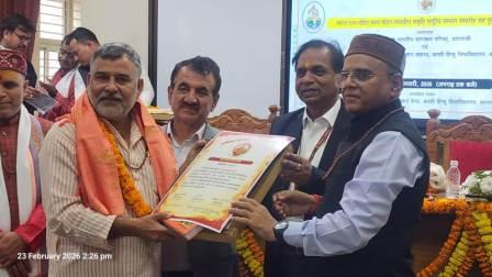 गाजीपुर। काशी हिंदू विश्वविद्यालय के वैदिक विज्ञान केंद्र में तीन कुलपतियों एवं संस्थान के पदाधिकारी ने ब्रजभूषण दूबे को सरस्वती का चित्र सम्मान पत्र अंग वस्त्रम गीता एवं बाबा विश्वनाथ को समर्पित रुद्राक्ष की माला देकर अलंकृत किया। सोमवार 23 फरवरी को देश विदेश की कई नामचीन हस्तियों की उपस्थिति में जैसे ही उद्घोषक ने ब्रजभूषण दूबे के नाम के साथ यह उल्लेख किया कि सामाजिक कार्यकर्ता स्वतंत्र पत्रकार के साथ-साथ महामना की बगिया (बीएचयू) में उनके माता लीलावती देवी की आहुति दी गई है अर्थात जनवरी 2020 में दिवंगत होने के उपरांत उनके पार्थिव शरीर का देहदान किया गया और श्री दुबे के पिताजी का मृत्योपरांत देहदान गाजीपुर के मेडिकल कॉलेज में किया गया है, वैसे ही तालियों की गड़गड़ाहट से पूरा सभागार गूंज उठा। यह भी बताया गया कि देश का पहला परिवार ऐसा है जहां पति-पत्नी दोनों के देहदान का संकल्प न केवल भरा गया बल्कि मृत्यु के पश्चात उसे पूरा भी किया गया जिसकी आज मेडिकल के बच्चों के लिए महती आवश्यकता है! देहदान के अभाव में अब मेडिकल के बच्चों की पढ़ाई प्रायोगिक रूप से नहीं हो पा रही है। संस्था के संयोजक प्रोफेसर विवेकानंद तिवारी ने ब्रजभूषण दूबे द्वारा कराए गए कई देहदान एवं दर्जनों नेत्रदान पर प्रकाश डालते हुए सोशल मीडिया प्लेटफॉर्म पर उनके द्वारा किए गए महत्वपूर्ण राष्ट्रीय योगदान पर भी चर्चा किया। श्री दुबे को सम्मानित करने वाले तीन कुलपतियों में प्रोफेसर मनोज दीक्षित महाराजा गंगा सिंह विश्वविद्यालय बीकानेर राजस्थान, प्रोफेसर महावीर सिंह हिमांचल विश्वविद्यालय हिमाचल प्रदेश, प्रोफेसर आलोक चग्रवाल गुरु घासीदास केंद्रीय विश्वविद्यालय छत्तीसगढ़ प्रमुख थे। वैसे तो गाजीपुर जनपद स्थित मनिहारी विकासखंड के यूसुफपुर ग्राम निवासी पूर्व ज्येष्ठ ब्लॉक प्रमुख पूर्व जिला पंचायत सदस्य ब्रजभूषण दूबे को स्वतंत्र पत्रकारिता के लिए यह सम्मान दिया गया किंतु यह भी उल्लेख किया गया कि सामाजिक, राजनीतिक, आंदोलनात्मक, मानव अधिकार एवं पर्यावरण के क्षेत्र में उनके द्वारा जो बड़ी लकीर खींची गई है ऐसे में चयन समिति द्वारा यह समझ पाना मुश्किल हो रहा था कि उन्हें किस क्षेत्र में विशेष उल्लेखनीय योगदान के लिए सम्मानित किया जाए। अखिल भारतीय सारस्वत सम्मान से विभूषित किये जाने के बाद ब्रजभूषण दूबे ने कहा कि जिस महामना की बगिया में हमारी पूजनीया माँ लीलावती देवी का देहदान जनवरी 2020 में हुआ उस भारत रत्न के पवित्र शिक्षा संकुल में सम्मानित होना हमारे लिए गौरव की बात है। श्री दुबे के सम्मान से कुंभनाथ जायसवाल कैप्टन योगेंद्र यादव शिवम उपाध्याय समग्र विकास इंडिया के व्याख्याता गुल्लू सिंह यादव सामा