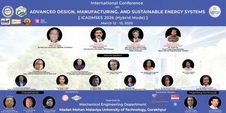 लखनऊ। मदन मोहन मालवीय प्रौद्योगिकी विश्वविद्यालय गोरखपुर के यांत्रिक अभियांत्रण विभाग द्वारा 12 व 13 मार्च 2026 को दो दिवसीय अंतरराष्ट्रीय संगोष्ठी “इंटरनेशनल कॉन्फ्रेंस ऑन एडवांस्ड डिजाइन, मैन्युफैक्चरिंग एंड सस्टेनेबल एनर्जी सिस्टम्स (ICADMSES-2026)” का आयोजन किया जा रहा है। यह सम्मेलन विज्ञान भारती के संयुक्त सहयोग से आयोजित होगा, जिसमें भारत सहित कई देशों के प्रतिष्ठित वैज्ञानिक, शिक्षाविद, उद्योग विशेषज्ञ और शोधार्थी भाग लेंगे। इस संबंध में जानकारी देते हुए यांत्रिक अभियांत्रण विभाग के डॉ. पल्लव गुप्ता ने बताया कि सम्मेलन के चीफ पैट्रन विश्वविद्यालय के कुलपति प्रो. जे. पी. सैनी होंगे। उद्घाटन समारोह में एचबीटीयू कानपुर के कुलपति प्रो. सम्शेर मुख्य अतिथि के रूप में उपस्थित रहेंगे, जबकि समापन समारोह में एम्स गोरखपुर की कार्यकारी निदेशक एवं सीईओ मेजर जनरल (डॉ.) विभा दत्ता मुख्य अतिथि के रूप में प्रतिभागियों को संबोधित करेंगी। कार्यक्रम में विज्ञान भारती के जोनल ऑर्गनाइजिंग सेक्रेटरी अंकित राय विशिष्ट अतिथि के रूप में शामिल होंगे। इस संबंध में जानकारी देते हुए डॉ. पल्लव गुप्ता ने बताया कि इस अंतरराष्ट्रीय सम्मेलन में ब्राजील, मलेशिया और भारत सहित कई देशों के प्रतिष्ठित प्रोफेसर, वैज्ञानिक एवं शोधकर्ता भाग लेंगे और अपने नवीन शोध व अनुभव साझा करेंगे। उन्होंने बताया कि सम्मेलन के दौरान विभिन्न तकनीकी विषयों पर विशेषज्ञों के व्याख्यान आयोजित किए जाएंगे। इसके साथ ही बड़ी संख्या में शोधार्थी भी अपने शोध-पत्र (पेपर प्रेजेंटेशन) प्रस्तुत करेंगे, जिससे प्रतिभागियों को नवीनतम शोध, तकनीकी नवाचार और आधुनिक औद्योगिक विकास से जुड़ी महत्वपूर्ण जानकारियां प्राप्त होंगी। दो दिवसीय इस संगोष्ठी में रिन्यूएबल एनर्जी, एडवांस्ड मटेरियल, थ्री-डी प्रिंटिंग, रोबोटिक्स, आधुनिक डिजाइन तकनीक तथा सस्टेनेबल एनर्जी सिस्टम्स जैसे महत्वपूर्ण विषयों पर व्यापक चर्चा और विचार-विमर्श होगा। विशेषज्ञों का मानना है कि इस सम्मेलन से विज्ञान, प्रौद्योगिकी और नवाचार के क्षेत्र में नए शोध और तकनीकी संभावनाओं को दिशा मिलेगी। इस अंतरराष्ट्रीय संगोष्ठी को विज्ञान एवं प्रौद्योगिकी परिषद, उत्तर प्रदेश सरकार की ओर से आर्थिक सहयोग प्राप्त हुआ है। इसके साथ ही दिल्ली की जुपिटर इंजीनियरिंग वर्क्स द्वारा भी आंशिक आर्थिक सहायता प्रदान की गई है, जिससे सम्मेलन के सफल आयोजन में महत्वपूर्ण सहयोग मिल रहा है। कार्यक्रम के सफल आयोजन में यांत्रिक अभियांत्रण विभाग के विभागाध्यक्ष (HOD) प्रो. संजय मिश्रा, प्रो. जीऊत सिंह, डॉ. पल्लव गुप्ता तथा डॉ. वीरेंद्र कुमार सहित विभाग के अन्य शिक्षकों की महत्वपूर्ण भूमिका 
