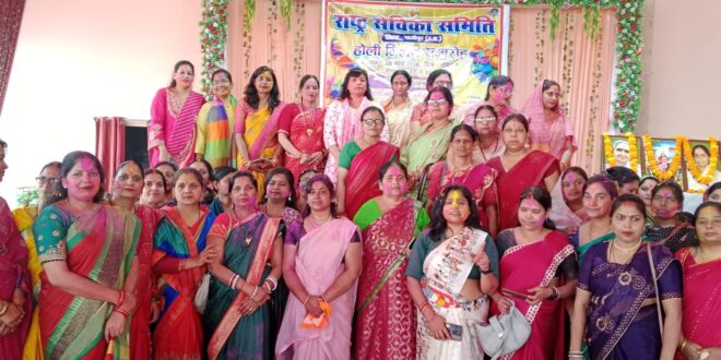 गाजीपुर। राष्ट्र सेविका समिति के तरफ से होली के शुभ अवसर पर आज गाजीपुर के अवध पैराडाइज मैरेज होल में राष्ट्र सेविका समिति द्वारा होली मिलन समारोह का कार्यक्रम सम्पन्न हुआ ।महिलाओं का एक सांस्कृतिक और सामाजिक कार्यक्रम हुआ, जो होली के अवसर पर आयोजित किया जाता है। इसका उद्देश्य आपसी स्नेह, संगठन की एकता और भारतीय संस्कृति को बढ़ावा देना होता है। कार्यक्रम की शुरुआत में दीप प्रज्वलन कर मंगलाचरण से हुआ।होली के गीत और सांस्कृतिक कार्यक्रम – पारंपरिक फाग, होली गीत, नृत्य आदि हुआ ।रंग-गुलाल से होली मिलन – सभी बहनें एक-दूसरे को गुलाल लगाकर ,पुष्प वर्षा के साथ होली खेली और शुभकामनाएँ आपस मे बहनो ने दिया। तत पश्चात सबका परिचय हुआ जिसमें मुख रूप से उपस्थित बिभाग संचालिका श्री मति नीलम राय ,जिला कार्यवाहिका नीलम जी, नगर कार्यवाहिका सोनी जी ,नगर बौद्धिक प्रमुख कल्याणी जी,जिला व्यवस्था प्रमुख सुमन जी सरिता जी ,अर्चना जी सुधा जी परिधी जी,सीमा जी,रीता जी,गुंजन जी,सबिता जी,शालिनी जी ,शिवानी जी, संजू जी एवं बिचार परिवार से श्री मति साधना राय,किरण सिंह,माया जी ,लालसा भारद्वाज जी ,प्रीति जी आदि बहनो की उपस्थिति रही।अंत में समिति की प्रार्थना कर के बिकीर हुआ । मिठाई और अल्पाहार भी बहनो को ससम्मान कराया गया।कार्यक्रम का उद्देश्य- महिलाओं में संगठन और नेतृत्व भावना ओ बढ़ाना और भारतीय संस्कृति और परंपराओं का संरक्षण कर समाज सेवा के कार्यों के लिए प्रेरणा देना आपसी स्नेह और सौहार्द बढ़ाना। एक छोटा सा संदेश- “रंगों की उमंग, सेवा का संग – होली मिलन से बढ़े बहनों का संगठन।